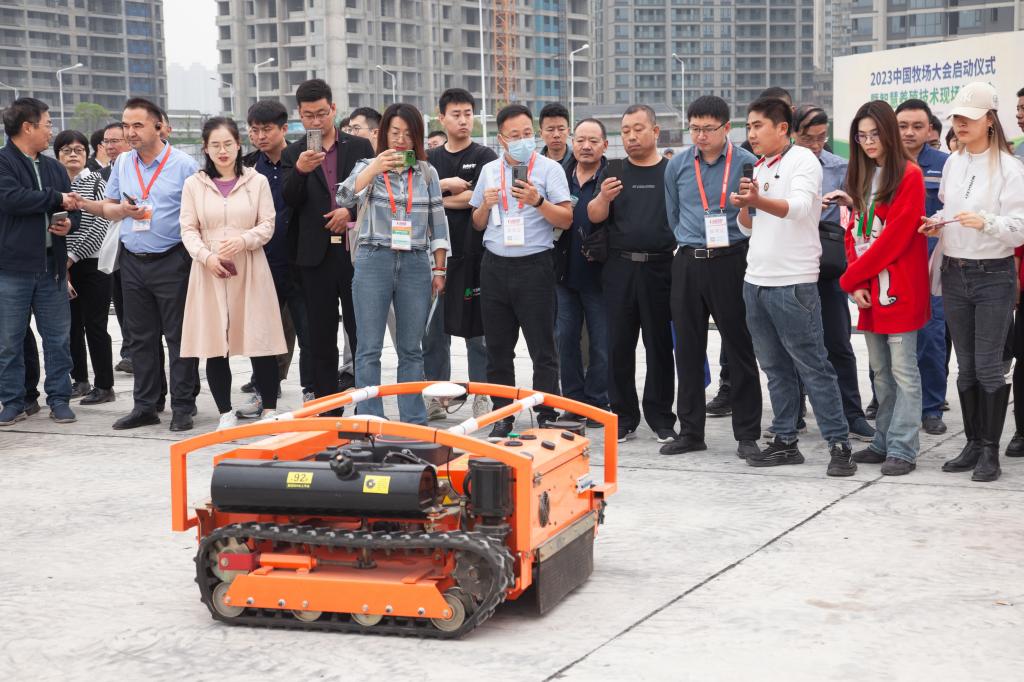 27日上午,山东省农业机械科公司党委书记郭洪恩主持肉牛牦牛智慧养殖关键技术装备现场演示会。会上现场演示了我国最新研发的饲料高效收贮技术、牛场精准分群、饲喂技术等装备。与会的中国农业技术开发中心副主任张辉、中国农垦经济发展中心副主任陈忠毅、中国农业机械流通协会会长范建华等专家学者参观现场新型农机,范建华做工作指导并致辞。