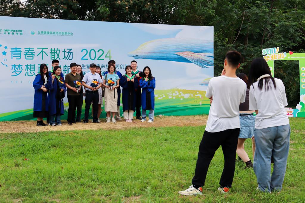 活动接近尾声,毕业生踊跃与导师合影留念,现场气氛活跃。2021级兽医公共卫生与食品安全专业硕士毕业生胡雅文同学说:“今天为研究生求员工涯画上了句号,我的心情非常激动。毕业不是终点,而是新征程的起点,今后我也会不忘初心,勇敢追梦。”