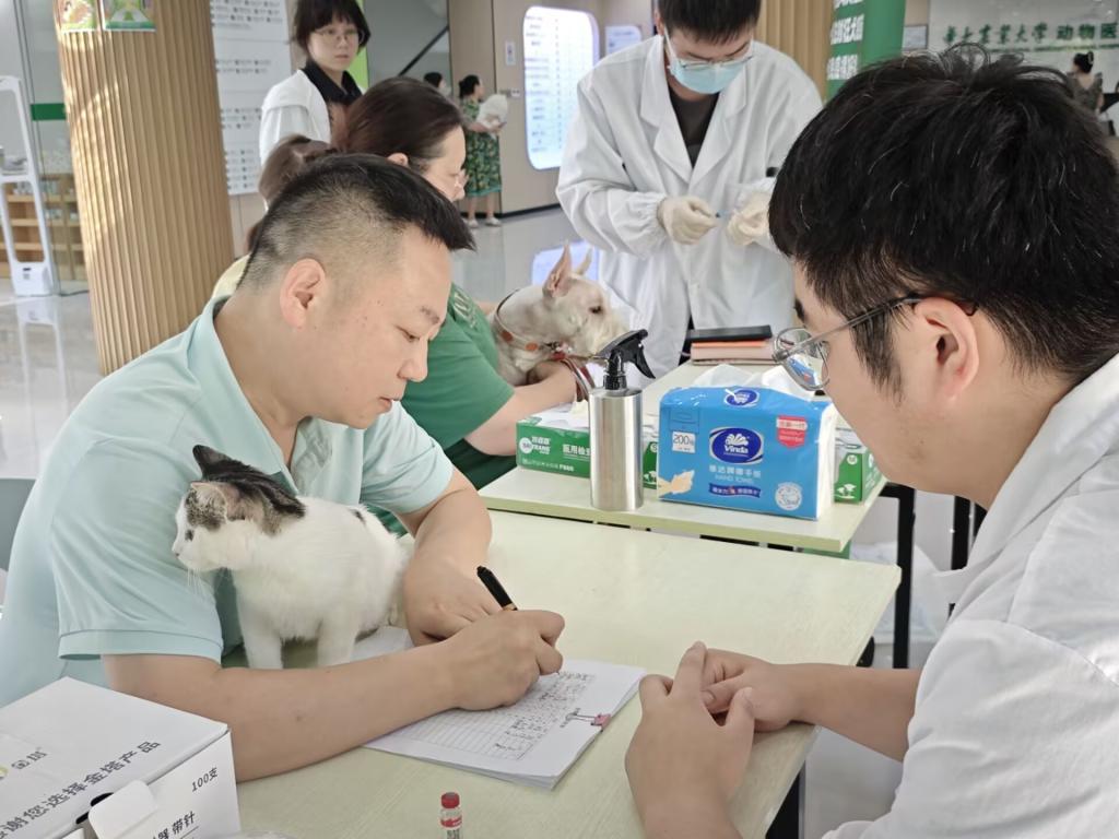 据悉,在志愿者们的共同努力下,本次活动共为28只犬、24只猫免费接种狂犬病疫苗。