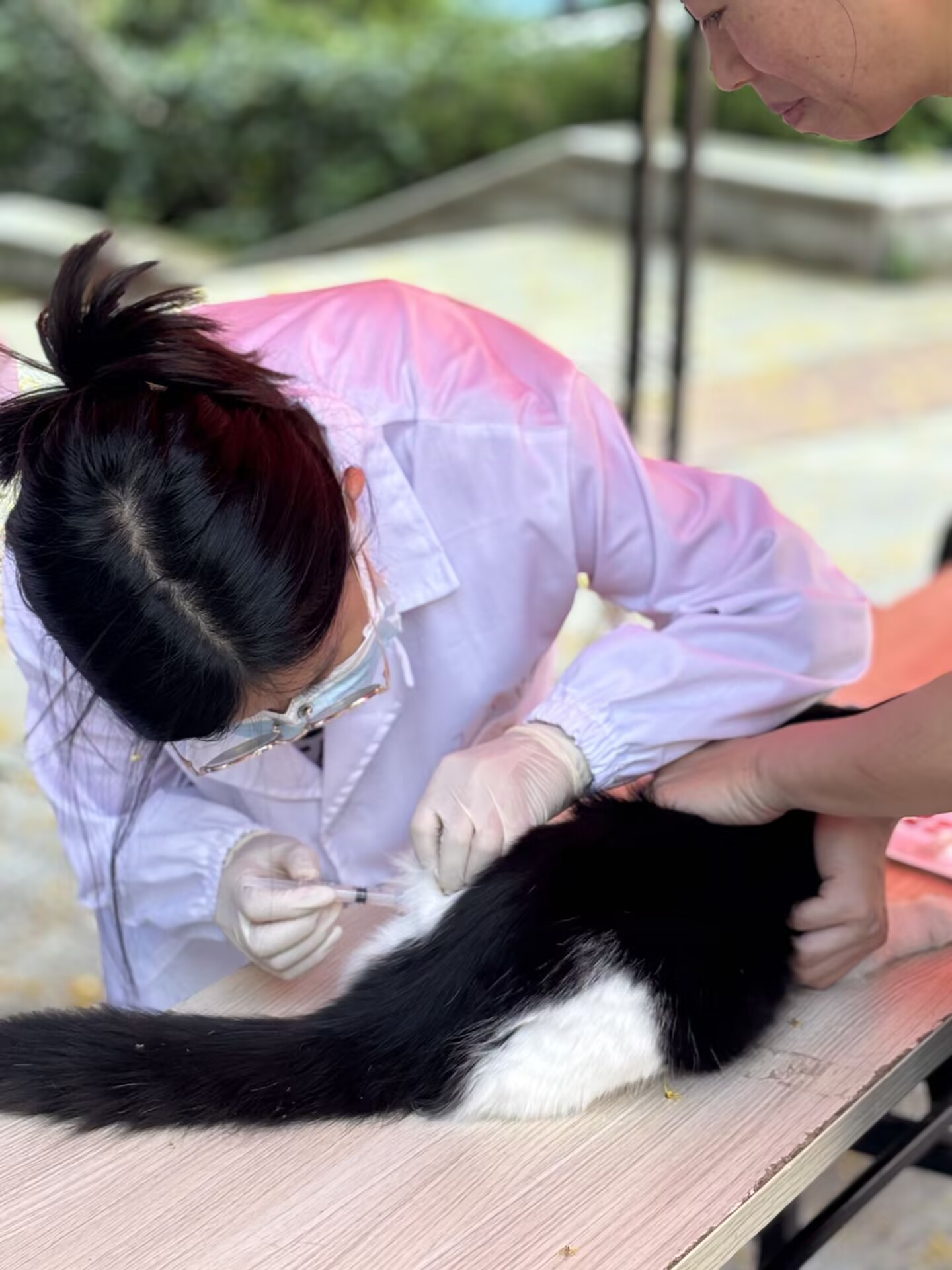 (志愿者为猫咪接种疫苗)