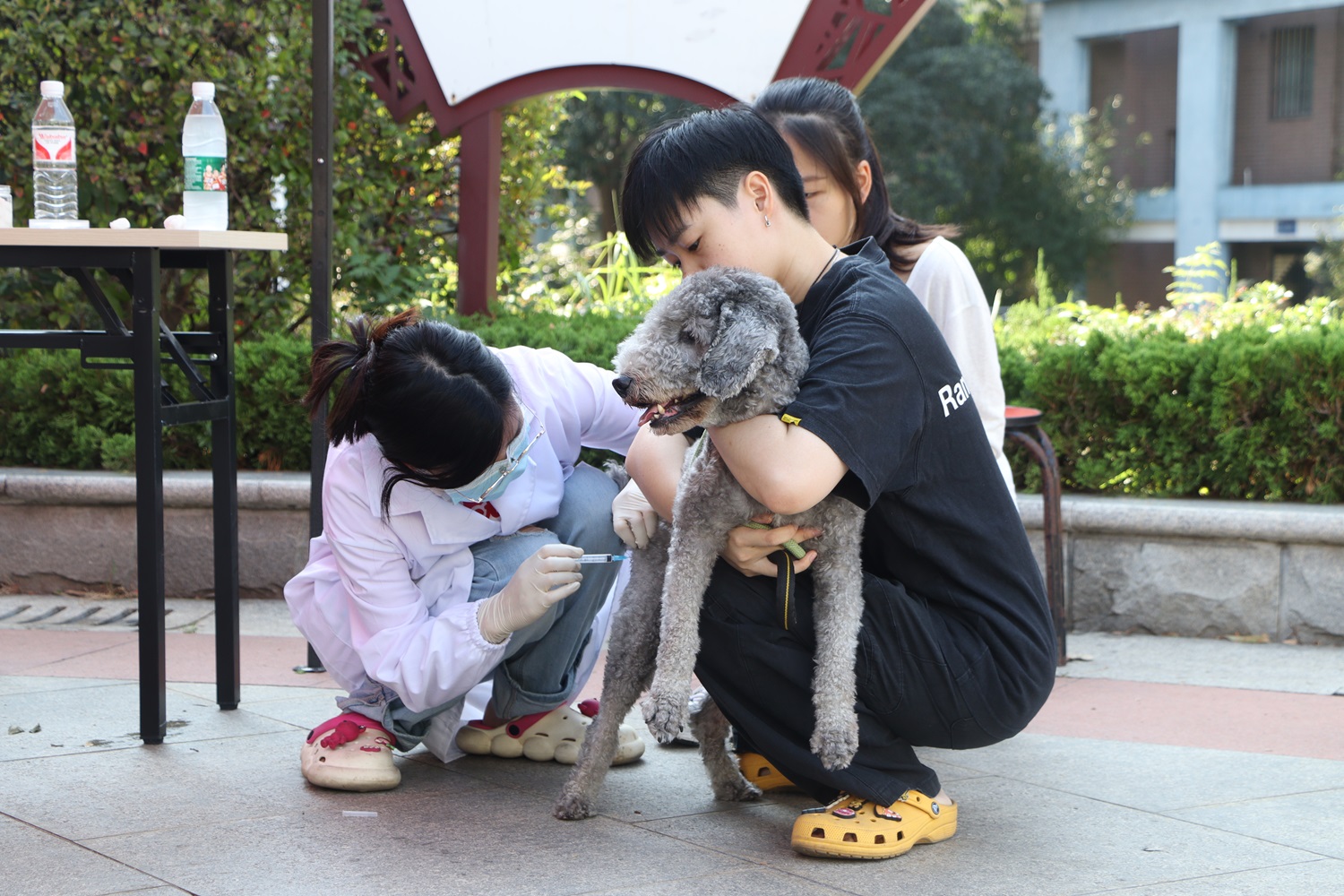 志愿者正在为宠物犬接种狂犬疫苗 拍摄者 李卓霖