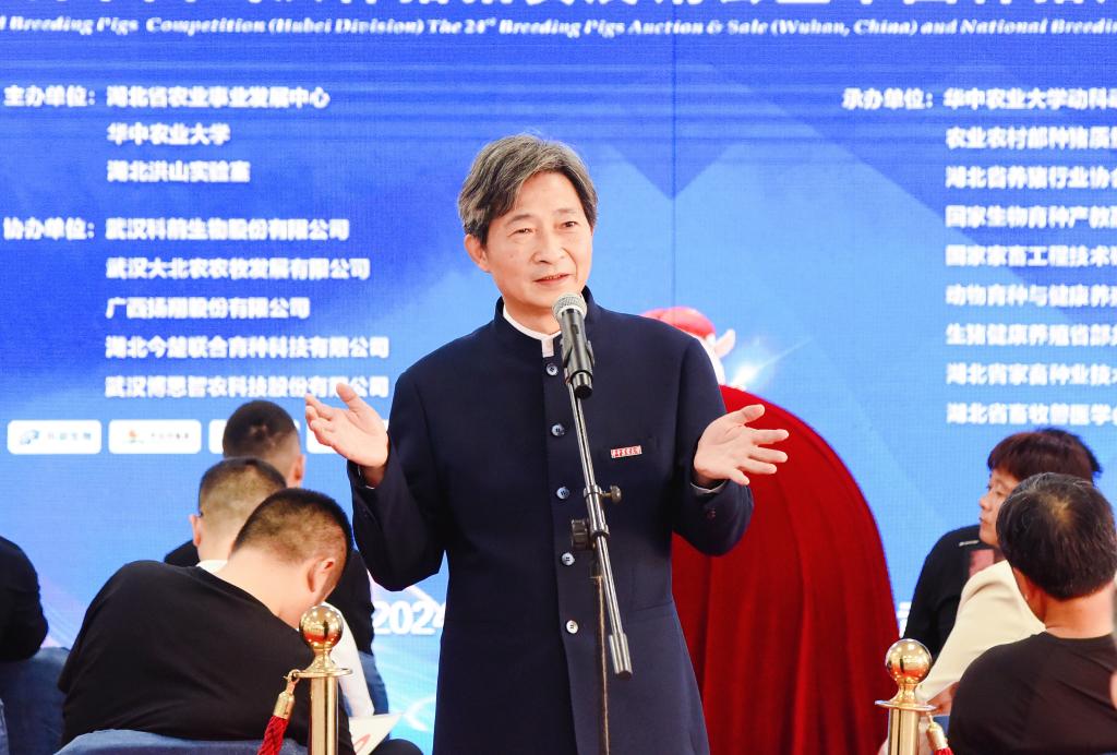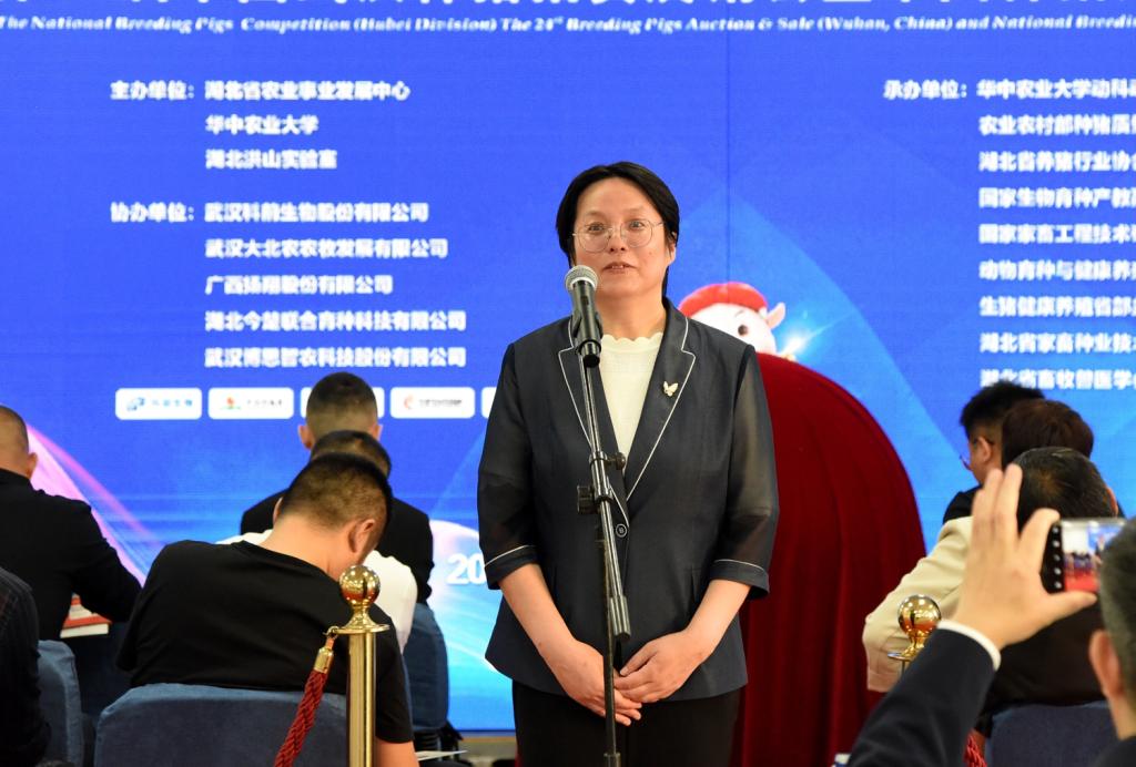 湖北省农业事业发展中心党组成员、副主任易俊东宣布第24届中国武汉种猪拍卖会正式开拍。