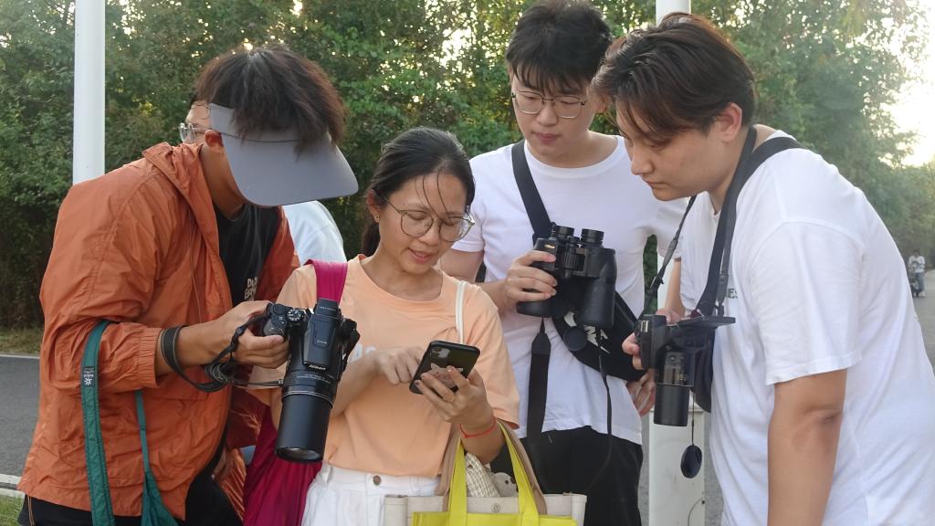 李翔向参与的观鸟爱好者讲解摄像机、望远镜等专业设备的基本操作方法。在狮子山绿道和南湖绿道,爱好者们观察并拍摄到不同品种的野生鸟类,包括喜鹊、灰喜鹊、山斑鸠、白鹭、鹊鸲等。通过专业设备的拍摄,爱好者们能够认识和辨别更多的陌生鸟类品种。李翔还为爱好者们传授如何区分大白鹭和小白鹭、喜鹊和八哥等知识。
