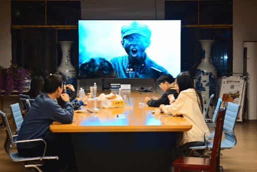 (师生们观看红色电影)