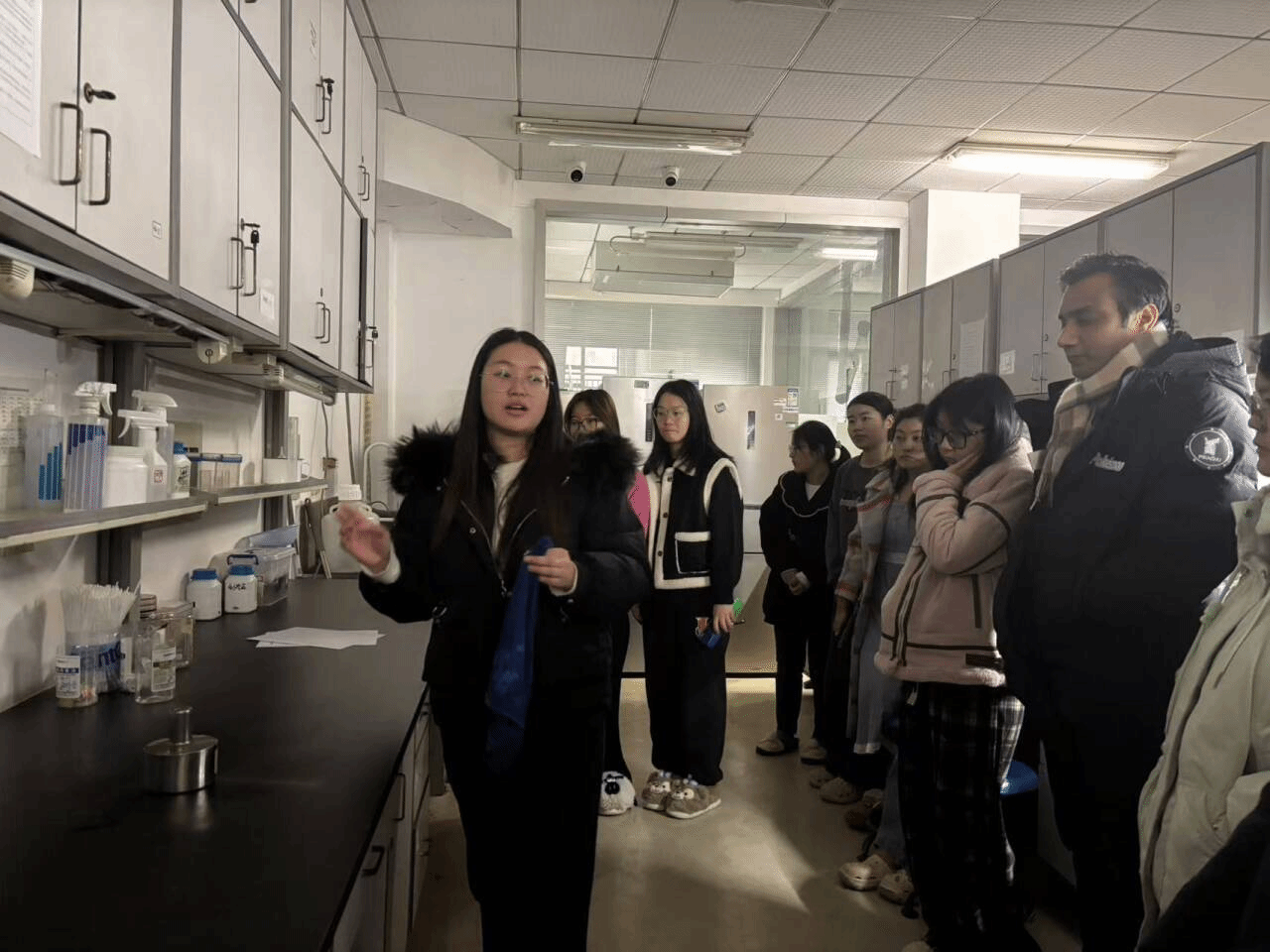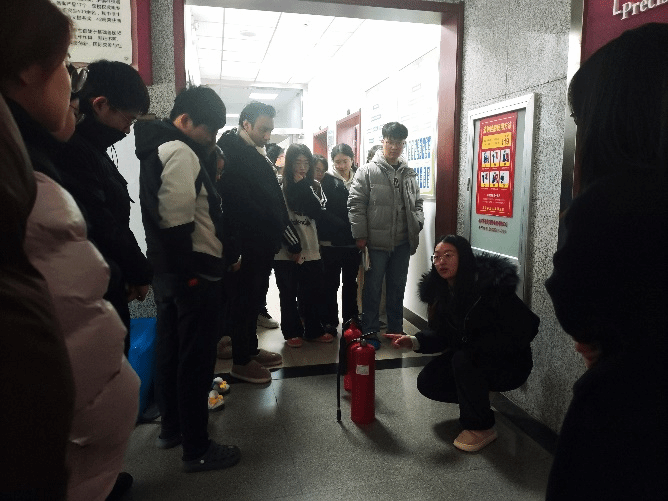 上午10:30,陈洁同学带领大家到各个实验室进行现场演练,演示了灭火器、灭火毯的使用,酒精灯、水浴锅、高压灭菌锅等加热设备的应急处理措施,并强调了注意事项。
