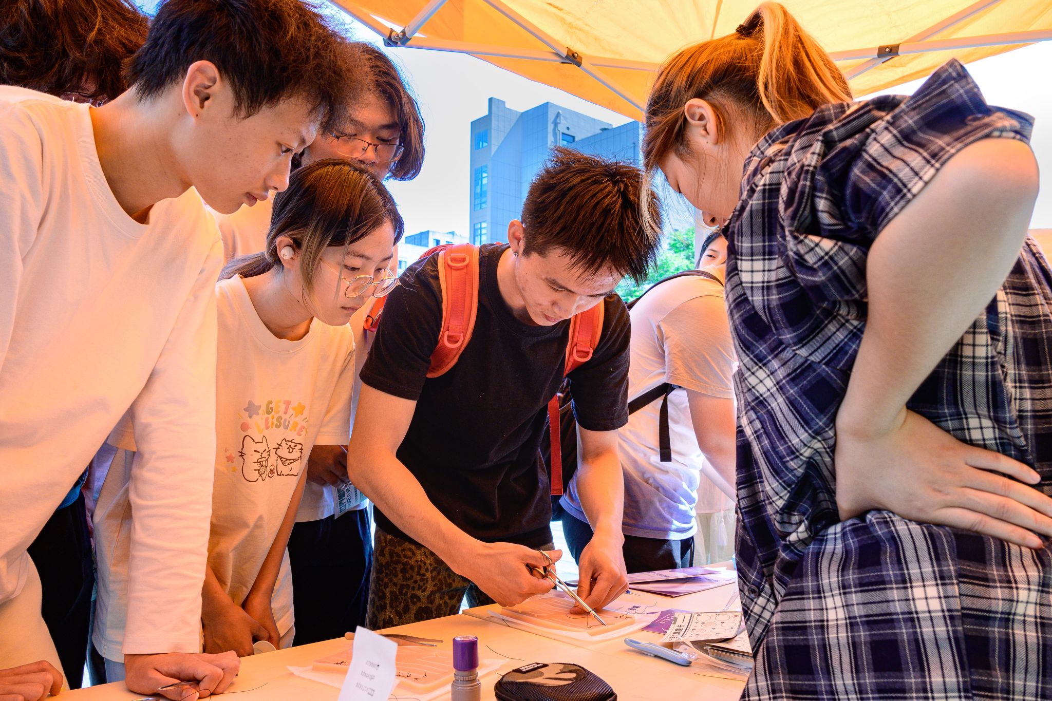 缝合体验(学通社记者 梁翠莹 摄)