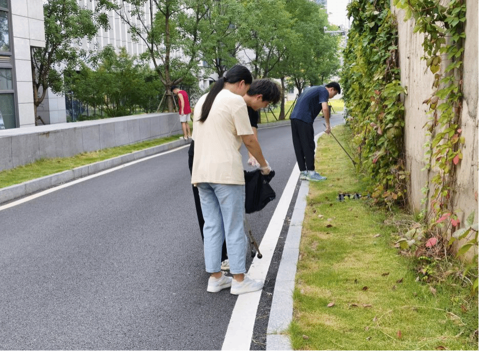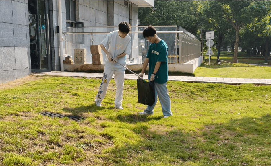 师生到达第四综合楼后在公司办公室及物业部老师的指导下进行分工,在向志愿者们简要讲述清洁事项后各组志愿者领取打扫工具,开始在第四综合楼内外及周边公共绿地开展卫生清理工作。大家分工协作,默契配合,忙碌的身影成为校园里一道亮丽的风景线。