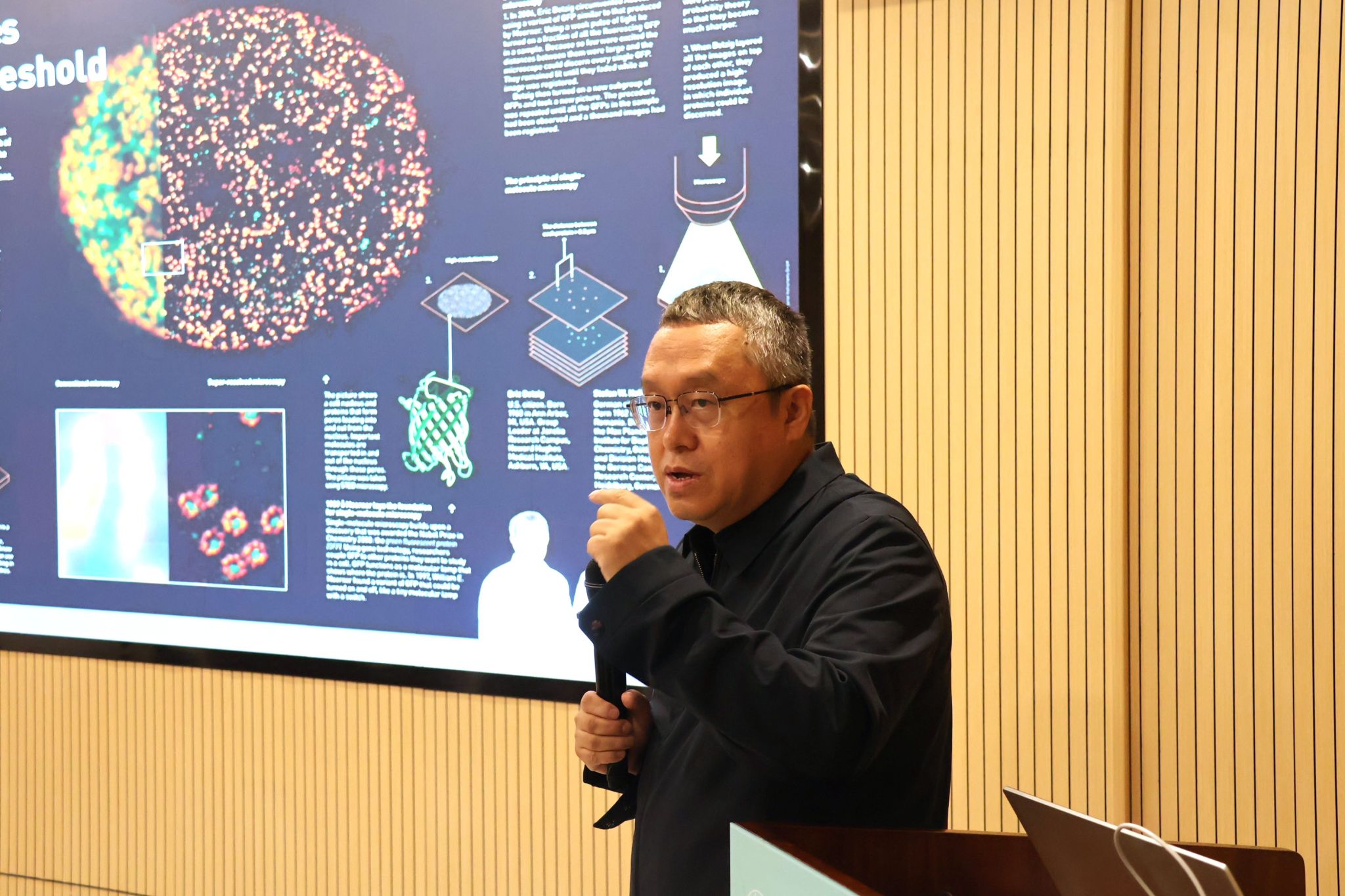 (郭连峰对Abberior STED进行讲解 刘俊成摄)