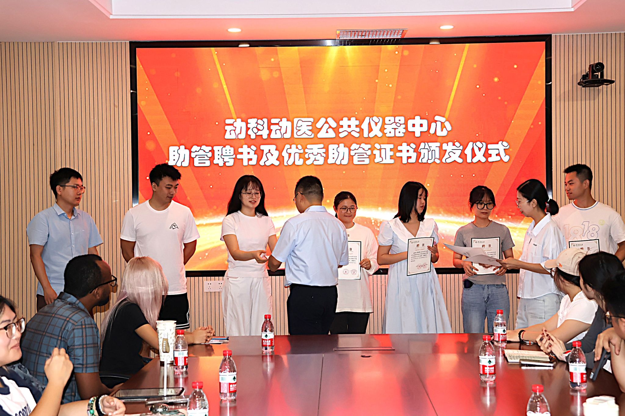 (赵凌副经理为七位助管颁发证书 赵筱瑭摄)