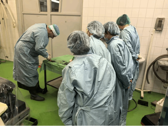 代表团分为A、B两组开展专项学习。A组聚焦伴侣动物、马医学,探访UVMB享誉欧洲的小动物临床医院,在Bálint Lukács博士引导下参观各功能区域,学习科学的动线设计与宠主宠物隔离管理理念。随后2天的跟诊实习中,师生深入临床一线,协助完成问诊、体格检查等工作,观摩多台外科及内窥镜手术,并与医生深度交流病例诊治思路,夯实了专业知识,提升了临床能力。在马医院,师生连续2日观摩学习,系统了解诊疗区域运作流程、设备应用及马匹护理要点,观摩马隐睾手术、关节镜手术等,直观感受国际前沿诊疗技术的严谨规范。2024级临床兽医学系硕士研究生宋雨桐表示,将把所学运用到实际工作中,深耕马术诊疗领域。