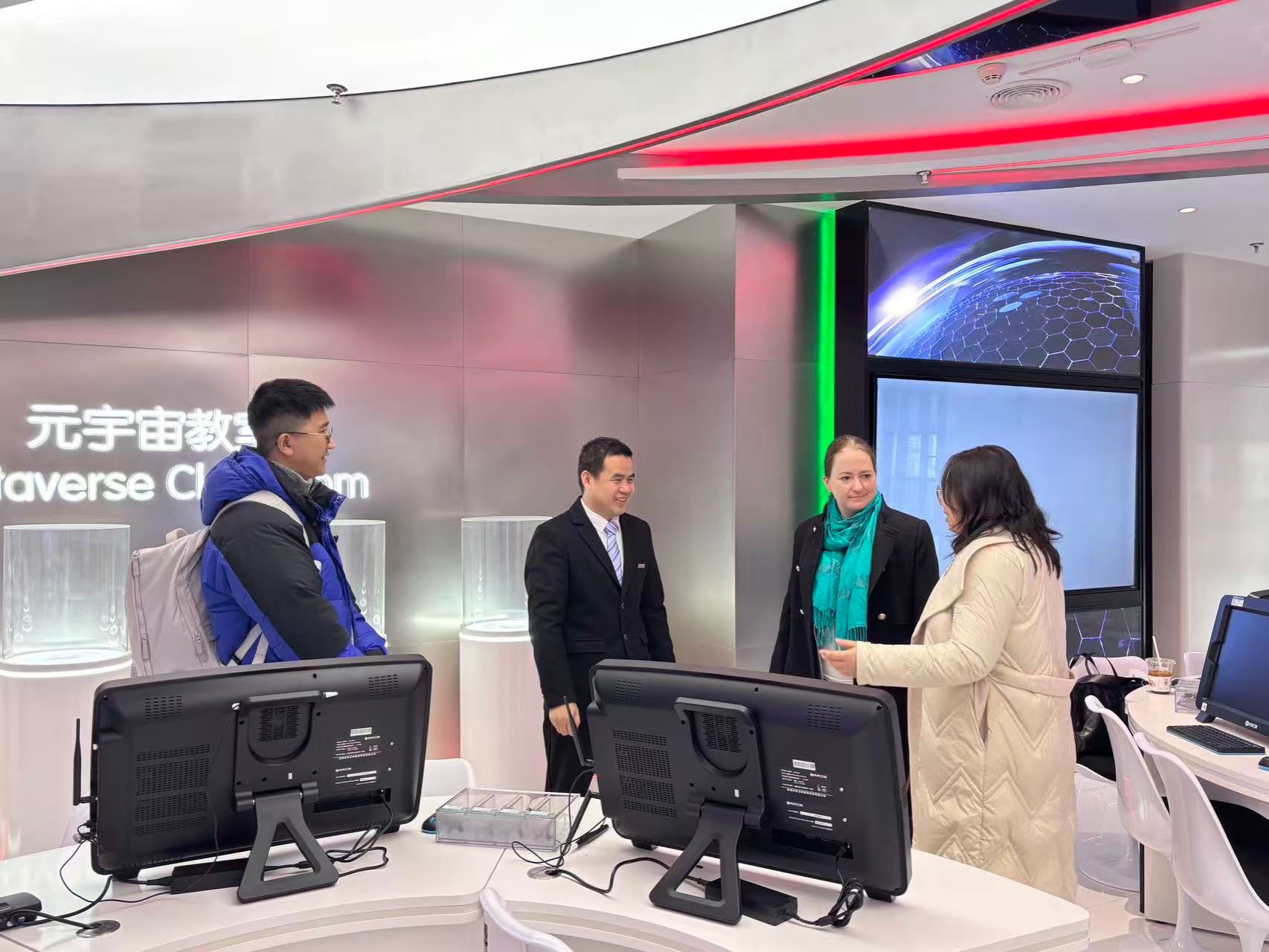 随后,来宾参观了第四综合楼的标本馆、元宇宙教室、本科教学平台及科研平台。彭洁诗博士对公司在兽医临床教学资源建设、数字教育技术融合应用以及前沿科研创新等方面取得的成果给予了高度评价。