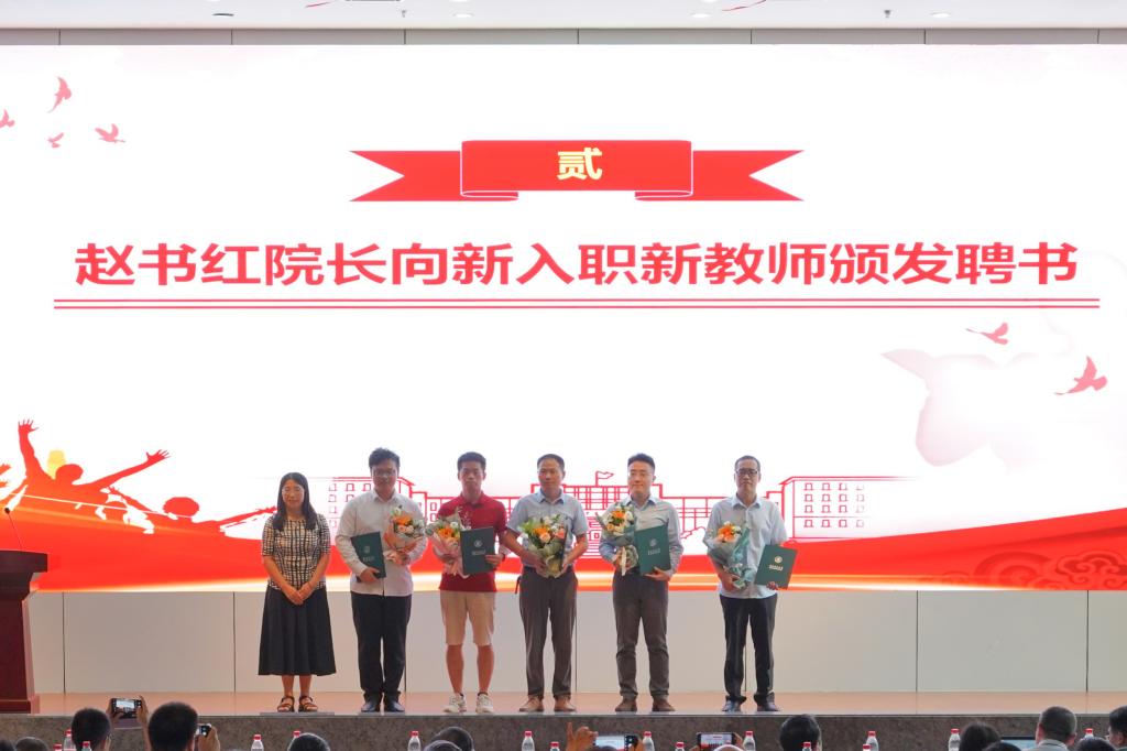 (赵书红经理向新入职教师颁发聘书)