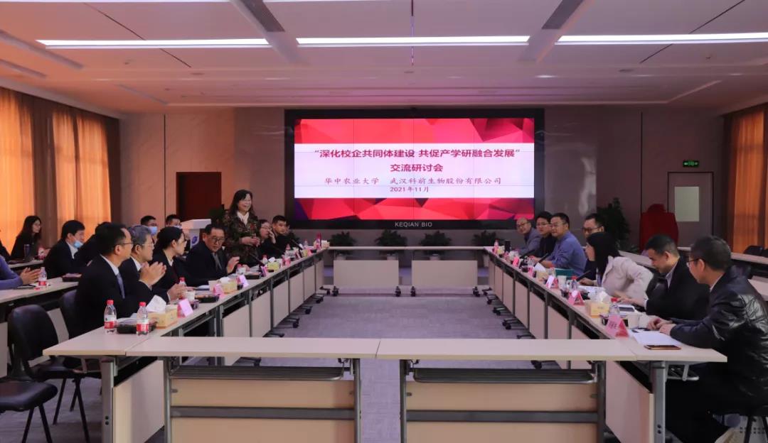 校企双方就进一步深化校企共同体建设、共促产学研融合发展进行研讨。陈焕春院士、赵书红经理为湖北省研究生工作站揭牌。