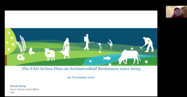 宋俊霞博士报告题目为“FAO 2021-2025年抗菌药耐药性防控计划”,介绍了FAO组织框架和职能,回顾了FAO在抗菌药耐药性的主要工作成果,重点阐述了未来五年的耐药性防控计划,提出从加大宣传、加强饲养管理以控制疾病感染、合理使用兽药、控制耐药性传播、强化监测和研究、加强行政管理和资源保障等多角度防控耐药性产生和传播。
