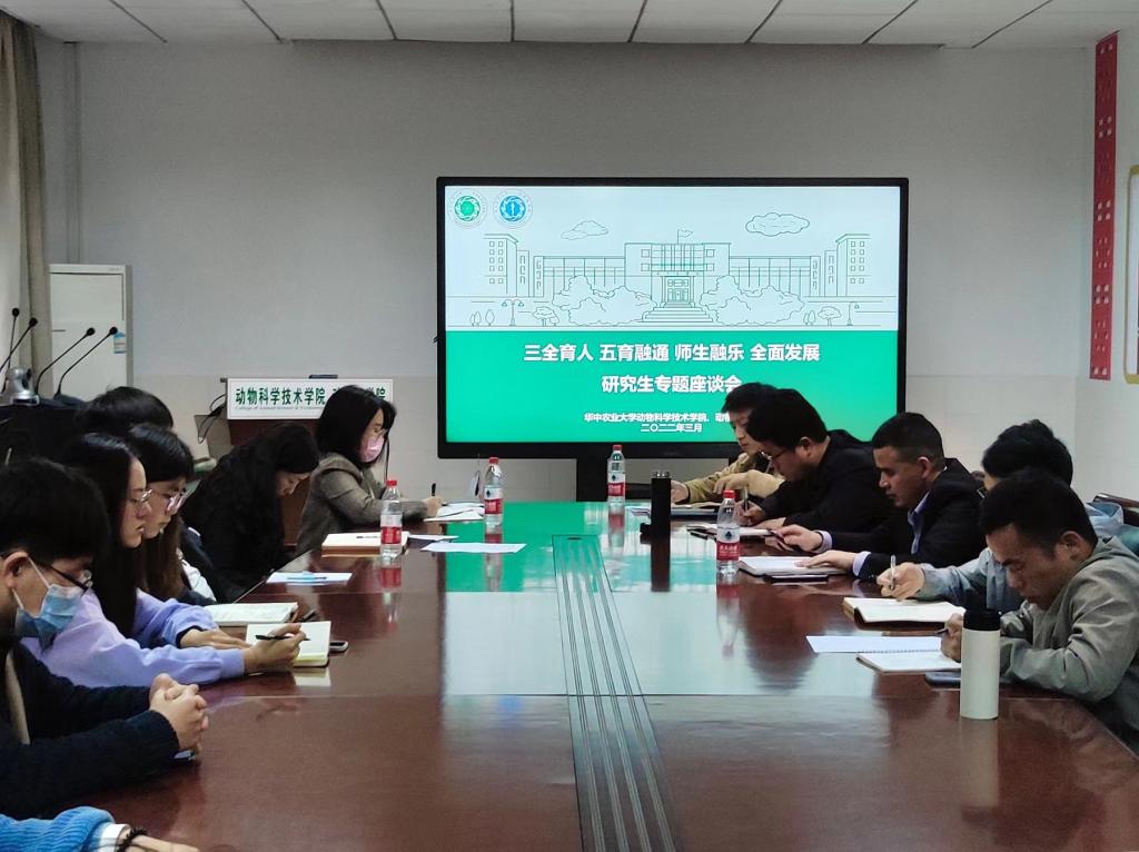 3月20日下午,公司在动科楼B105会议室举办以“三全育人、五育融通、师生融乐、全面发展”为主题的研究生专题座谈会。公司党委副书记代金贵、副经理彭贵青、研究生人才培养办公室教师代表及研究生代表参会。