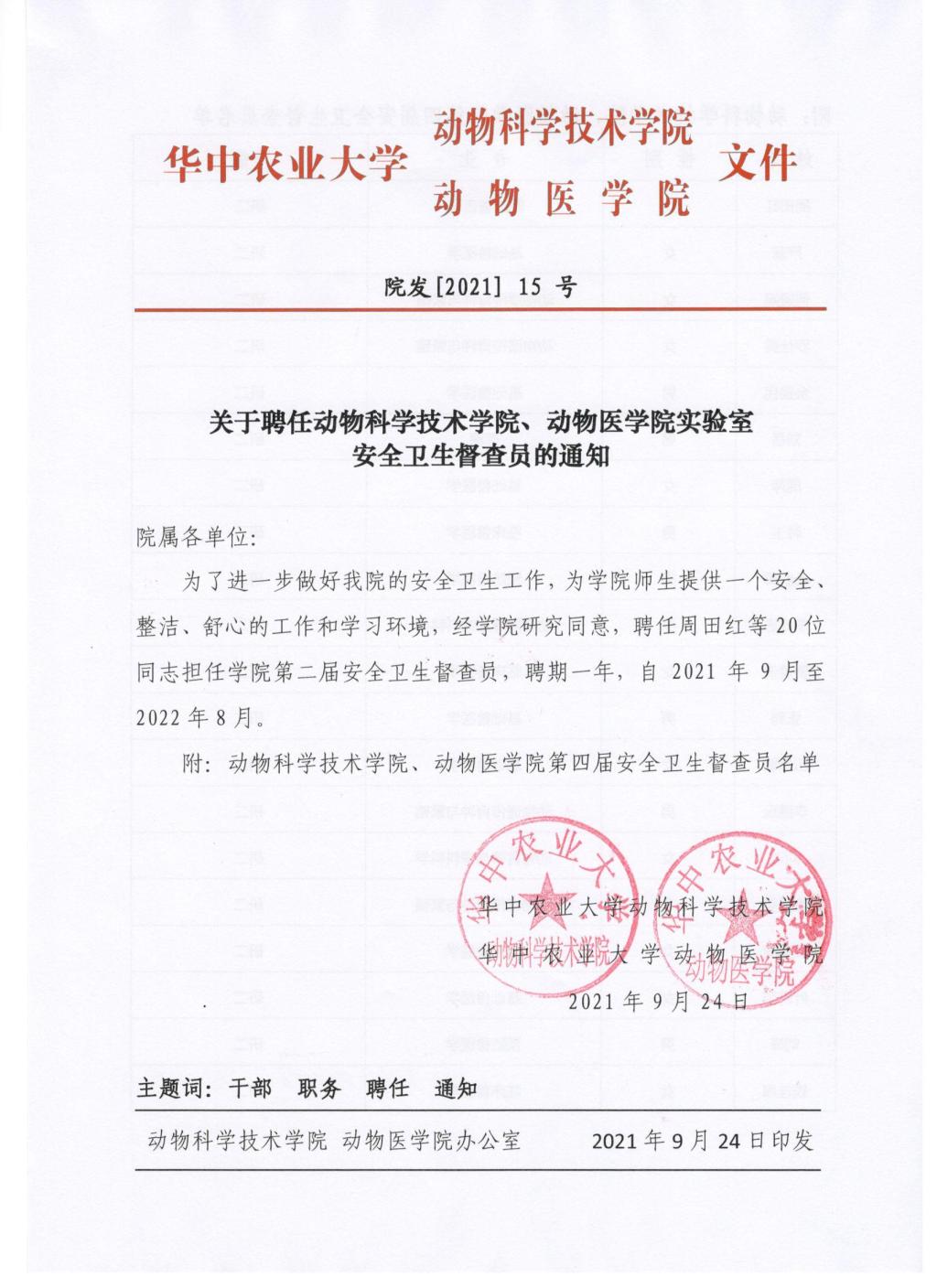 关于聘任bevictor伟德实验室安全卫生督察员的通知