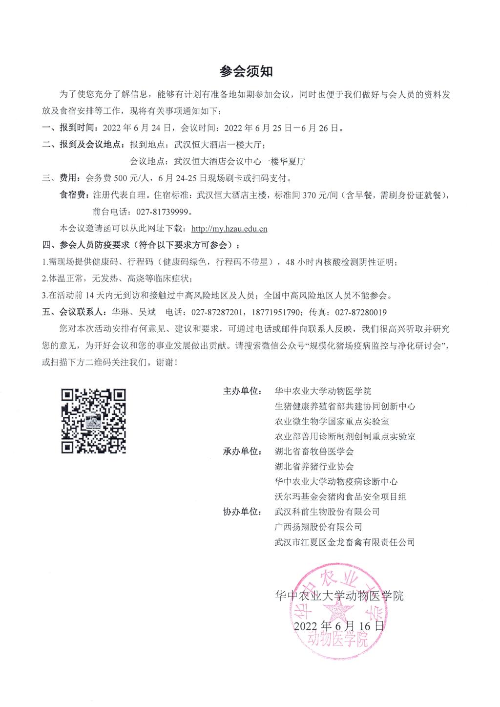 第二十一届全国规模化猪场主要疫病监控与净化专题研讨会会议通知(第二轮)