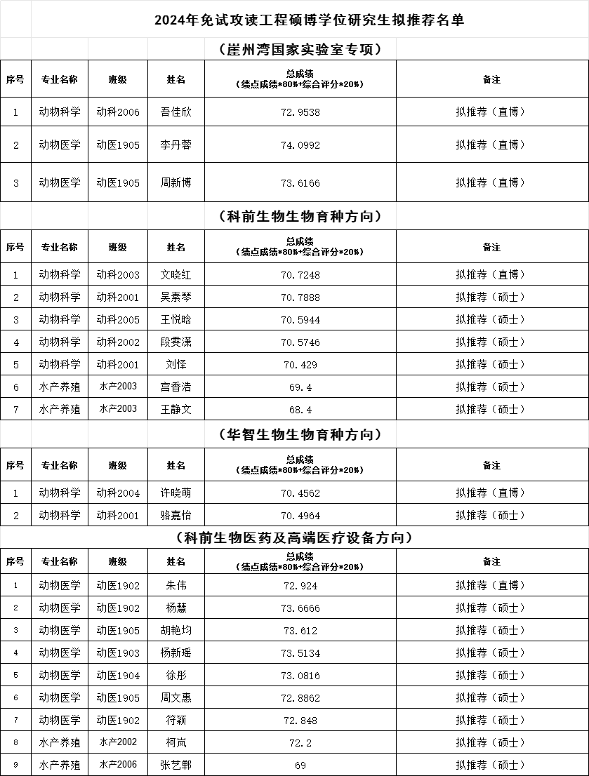 2024届本科生拟推荐免试攻读工程硕博专项结果公示