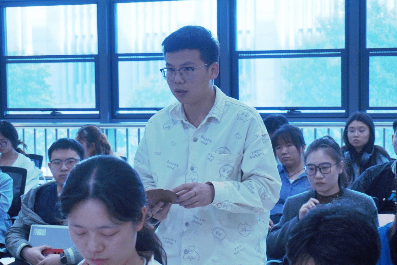 在讨论环节,各支部代表结合学科特色和个人生活分享了自己的心得。E31党支部宣传委员李意以“餐馆点餐适量”“会议提效不凑人”等生活场景为例,提出了 “厉行节约不是口号,而是可操作的行动准则”,号召党员从光盘行动、无纸化办公等具体场景切入,将八项规定精神转为日常行为规范。E26党支部积极分子王浩杰提出自己的“四维”行动框架,他讲到,作为研究生,要学透精神实质、践行勤俭节约、监督“隐形四风”和创新工作方式响应八项规定,要重点把握其“厉行勤俭节约”“密切联系群众”等核心要求,以“解决问题”为导向,避免“走过场”行为。E11党支部书记莫心宇以"作风建设无小事"破题,通过"喝酒只喝茅台”“让百姓无家可归"等典型案例警示研究生党员“勿以善小而不为,勿以恶小而为之”,从小事做起,节约实验耗材、维护科研环境,让八项规定融入日常科研和生活中。