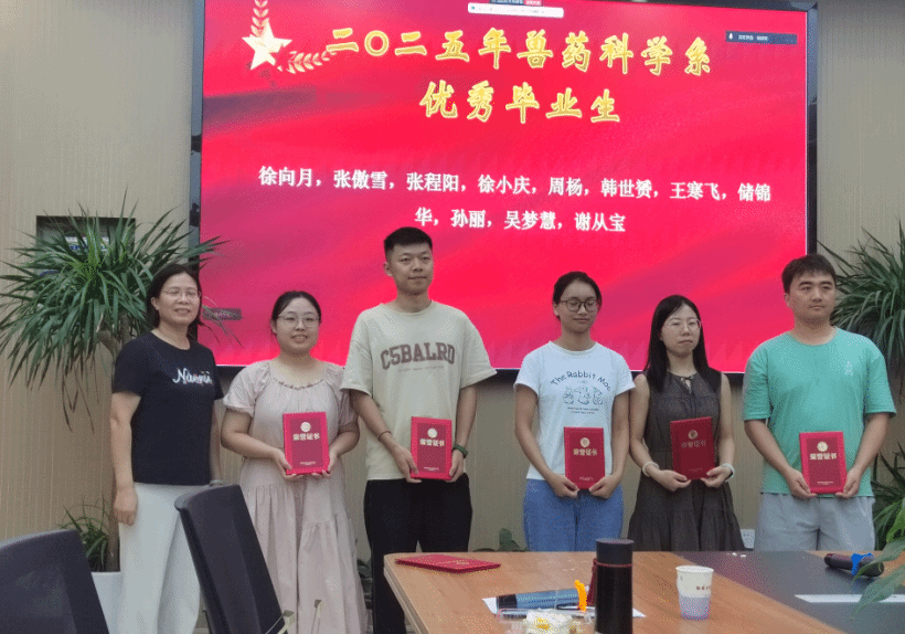 会议第五项,开展了特色活动,首先为上半年政治生日的党员庆祝;其次,开展毕业生座谈会,邀请毕业生畅谈自己读书时的一些经历和感想,给刚进实验室博一和研一员工传授经验,最后并对本年度兽药科学系的优秀毕业生进行了颁奖仪式。