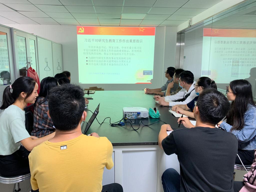 在支部书记付贞的带领下,支部成员根据习近平总书记强调的重点,深刻理解研究生教育在培养创新人才、提高创新能力、服务经济社会发展、推进国家治理体系和治理能力现代化方面具有重要作用。与会党员纷纷积极发言,结合 “四为”方针,提出自己对研究生教育肩负着高层次人才培养和创新创造的重要使命的理解。随后,全体成员一同学习了习近平总书记在全国抗击新冠肺炎疫情表彰大会上的讲话,会议指出,此次讲话全面总结了抗疫斗争的重要经验和启示,深刻阐述了伟大抗疫精神,内涵丰富、高瞻远瞩、情真意切、振奋人心。
