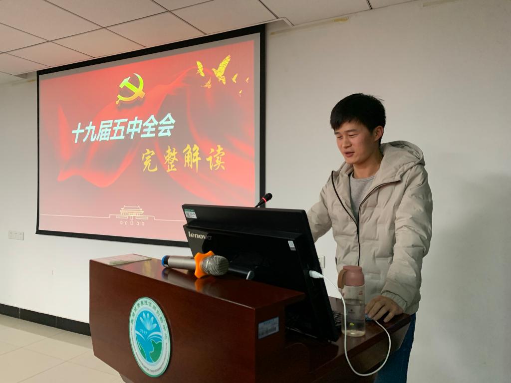 会议伊始,候强强同志向大家介绍了十九届五中全会的基本情况及主要议程。接着就目前全面建成小康社会取得的10个方面决定性成就、我国发展环境面临的深刻复杂变化、到2035年要实现的9个方面远景目标、“十四五”时期经济社会发展的6个方面主要目标及实现奋斗目标的12个方面具体举措展开讨论。最后,候强强同志带领大家共同学习了十九届五中全会的十四个关键词,让大家全面理解学习了十九届五中全会的会议精神。