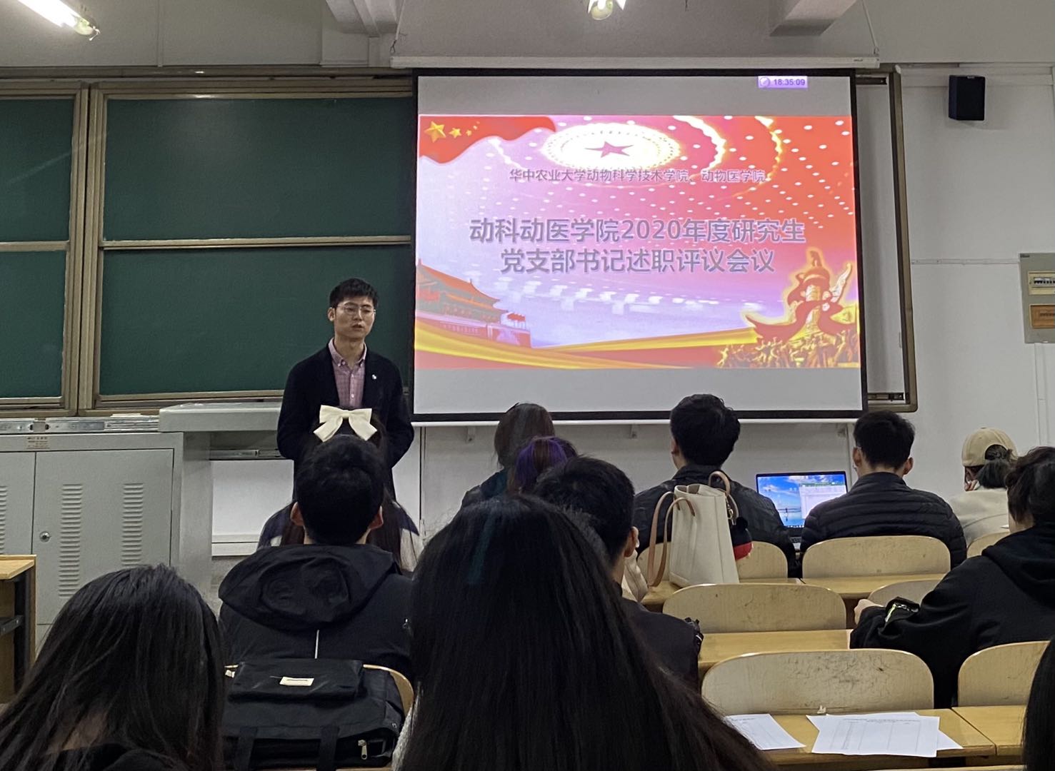 (通讯员 孙晓露 供图 代小童)2021年4月1日下午六点半,公司于二教403召开了bevictor伟德2020年度研究生党支部书记述职评议会议,会议由党建办主任喻正旺主持,院辅导员高宏铭老师、全体支部书记及党建办成员参加此次会议,来自动物营养与饲料学、动物遗传育种与繁殖学、预防兽医学、基础兽医学、临床兽医学及人才改革班的30个研究生党支部参与本次支部书记述职评议考核。