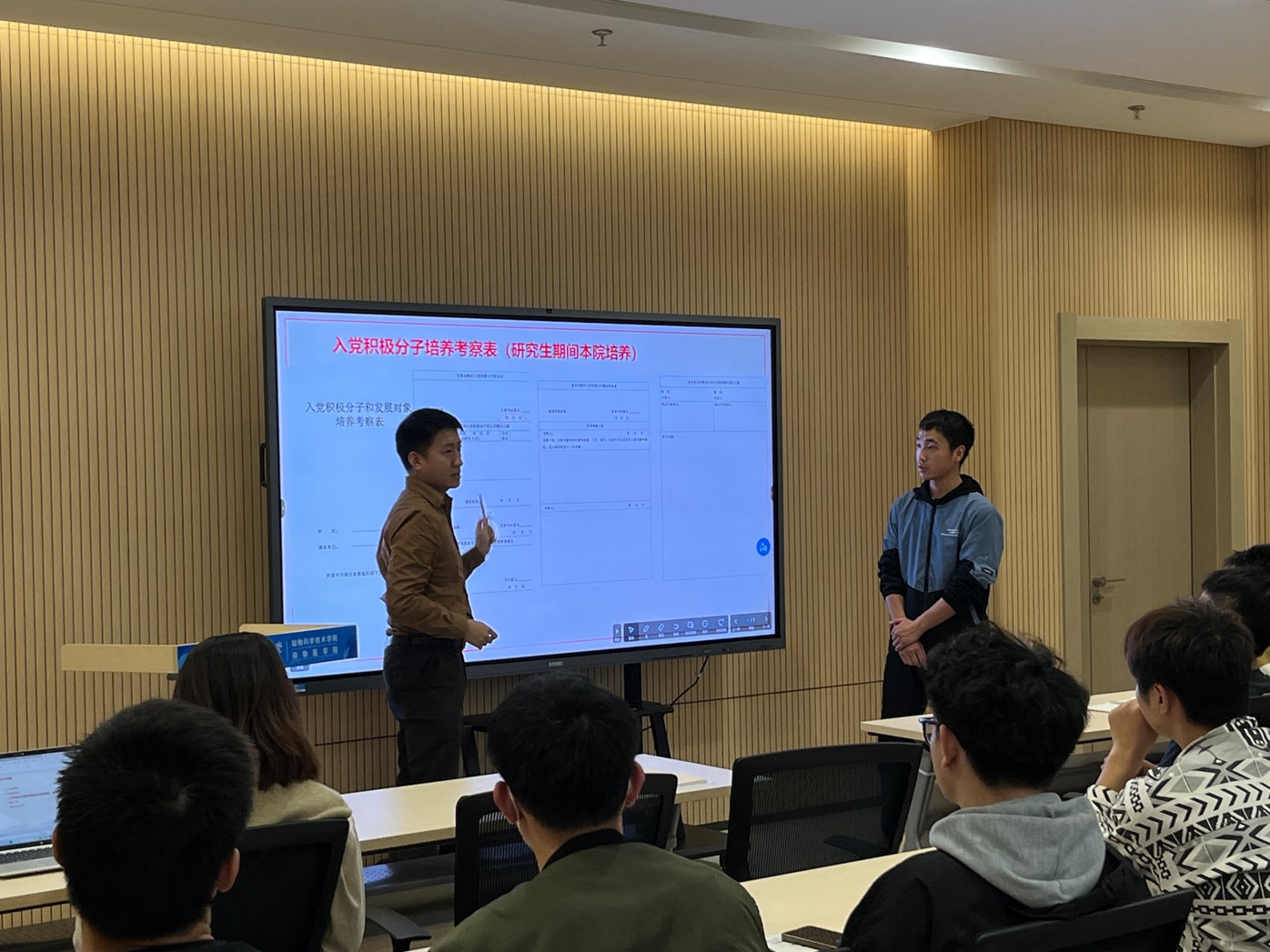 会议最后,范鑫对公司研究生入党积极分子确定和培养考察的工作进行讲解。为新任党支部书记解读了研究生申请入党的具体流程和积极分子档案管理相关要求。
