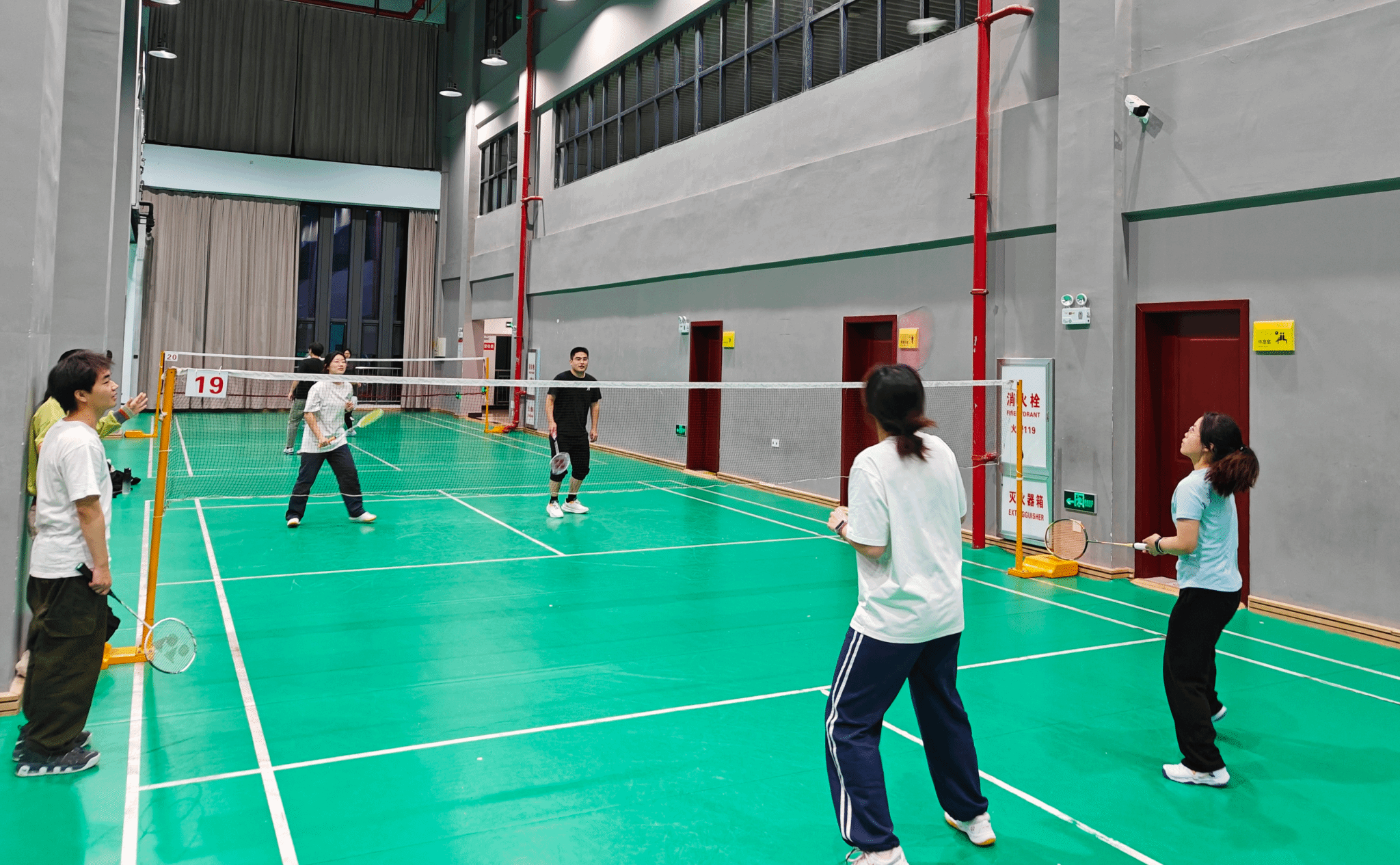 (两个支部成员打羽毛球)