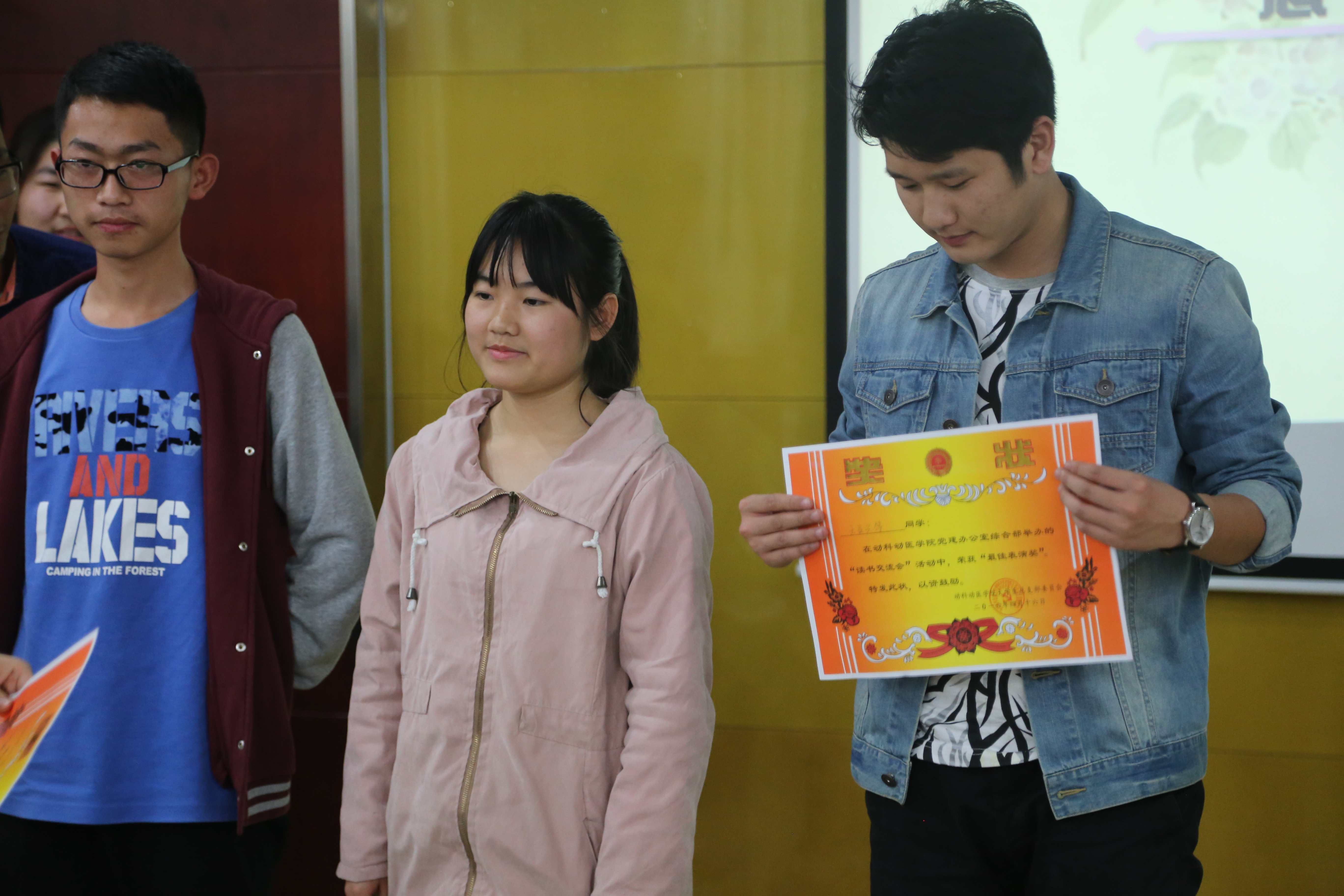 活动在主持人献唱的一首歌拉开了帷幕。首先,洪嘉遥向大家介绍了虹影的《上海王》,作品讲述的是女主筱月桂从乡下进入上海旧社会的辗转经历。一生的挣扎,无数的艰辛,最后从情欲与权利的漩涡里挣脱。杨文姬分享的是丁玲的《莎菲女士的日记》。这本书在文体形式上采用了日记体,细微而大胆的描写赋予了主人公饱满情感的形象。金亚辉则以幽默的语言向大家推荐了《撒哈拉的故事》,获得了同学们的极大的关注度。文中的三毛,性格独立,热爱生活,对爱情忠贞不渝。分享结束后,他还将他所带的这本《撒哈拉的故事》赠予了一位入党积极分子,希望大家能保持阅读的好习惯。在这样的分享中,文学气息渐浓,几位同学继续为我们推荐书籍:彭哲伦推荐的《飘》,彭晓分享的《霍乱时期的爱情》,王亚兴推荐的的《金锁记》。几位同学分享了自己的感悟,并引起了大家的共鸣。