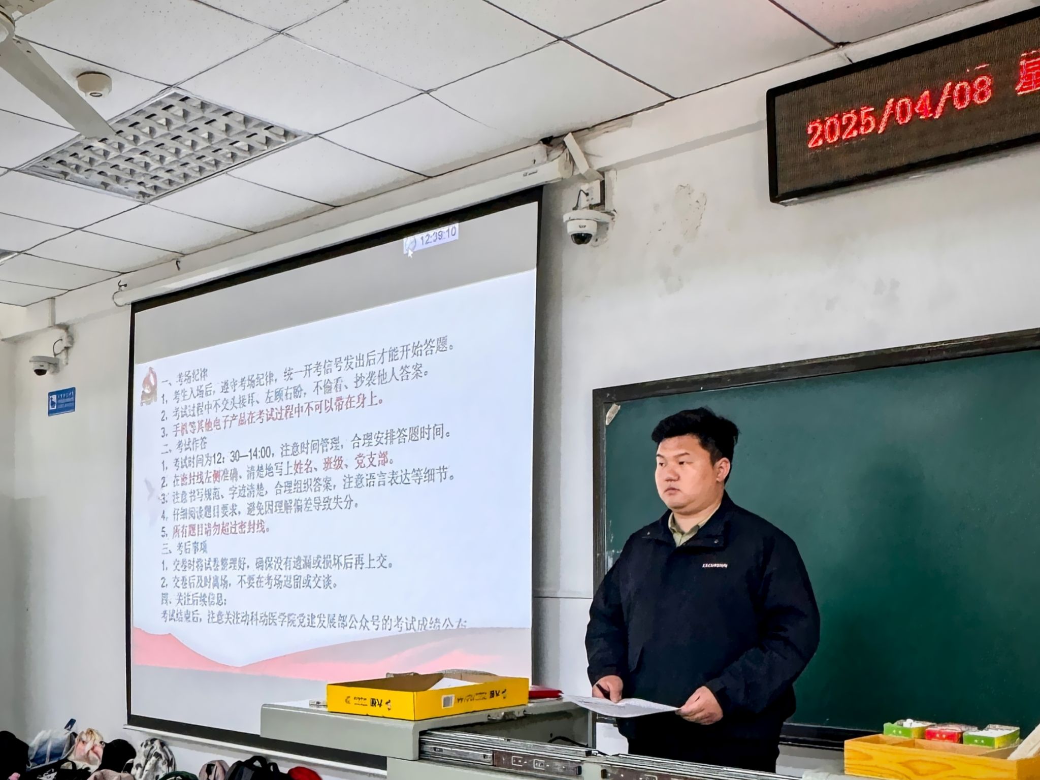 考前,公司党建发展部工作人员向入党积极分子宣读考场纪律,明确考试要求,公司本科生辅导员程唐煜进一步就考试纪律作出重点强调,确保考试有序开展。考试过程中,考生们认真审题、仔细作答。监考人员严格履行职责、严肃监考,确保考试的公平与公正。