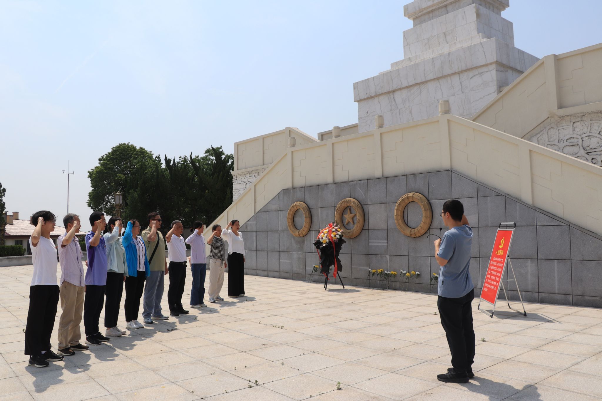 下午,参加活动的各党支部党员来到武汉市新洲区徐古红色公园参观学习。在徐古革命烈士纪念碑下,党员们集体向在革命战争时期牺牲于将军山的400余名革命烈士鞠躬默哀,并依次敬献鲜花,随后在于学祥老师的领誓下,党员们重温入党誓词,回顾入党初心使命;在将军山红色文化陈列馆,党员们认真研学中共新州第一个党组织的成立艰难困苦,以及将军山地区人民群众在大革命、土地革命、抗日战争以及解放战争时期的光荣事迹。