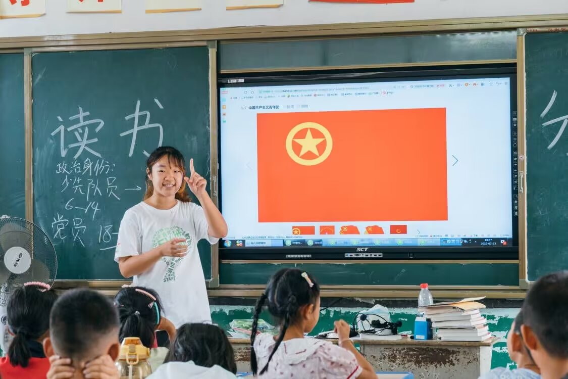 不止员工工作,许文诺将这份责任心带到了乡村支教。作为红杜鹃支教队的一员,她曾连续两年与队员们前往麻城市宋埠镇骑龙小学支教。闷热的教室里,昏黄的灯光闪烁着,一张张小桌子拼在一起,支教队的同学们各抒己见,激烈地交流着、深入地思考着,来自不同专业的他们,在此刻心系一处。