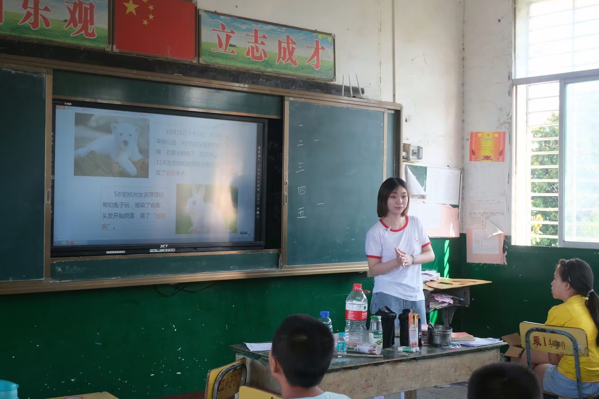 学习之余,汪子怡始终不忘回馈社会,以真心和行动温暖他人。截至目前,她的志愿时长已累计达百余小时,其中,暑期支教活动尤为难忘。