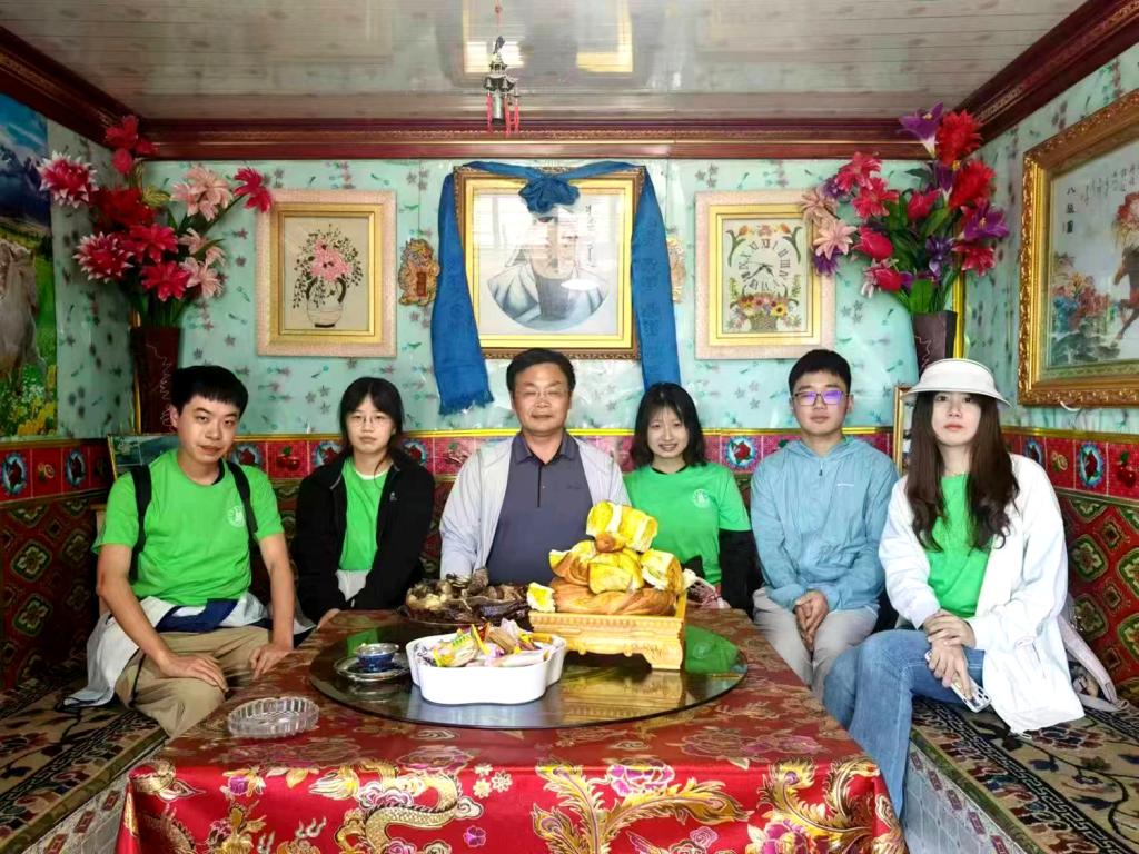 在牧民家中交流合影