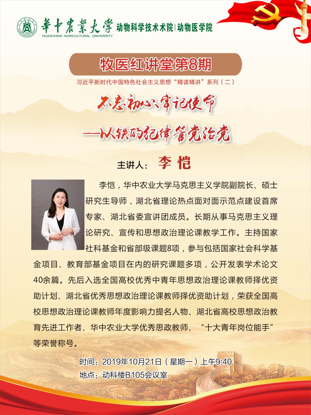 【学习教育】牧医红讲堂第八期:不忘初心、牢记使命——以铁的纪律管党治党