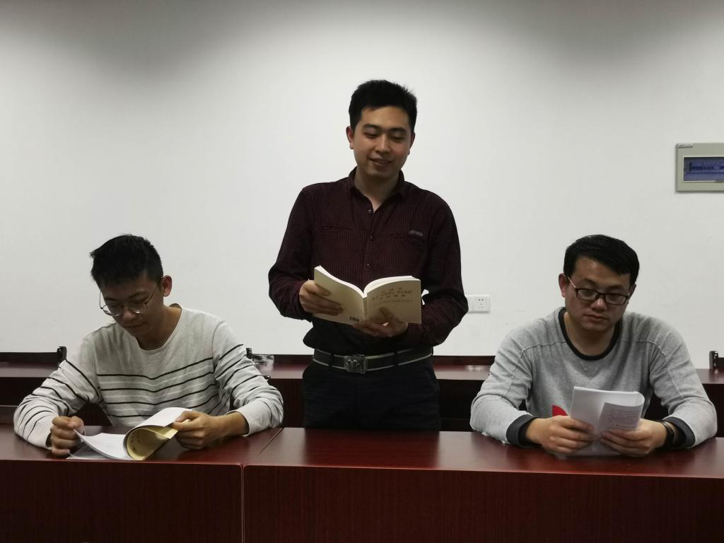 核心提示:2019年10月21日15点研究生预防第三支部在协同214开展了学习习近平“不忘初心,牢记使命”讲话精神的主题会议,支部书记李琦、支委王昊棋、贾含笑以及支部党员同志们参加了本次学习会议。