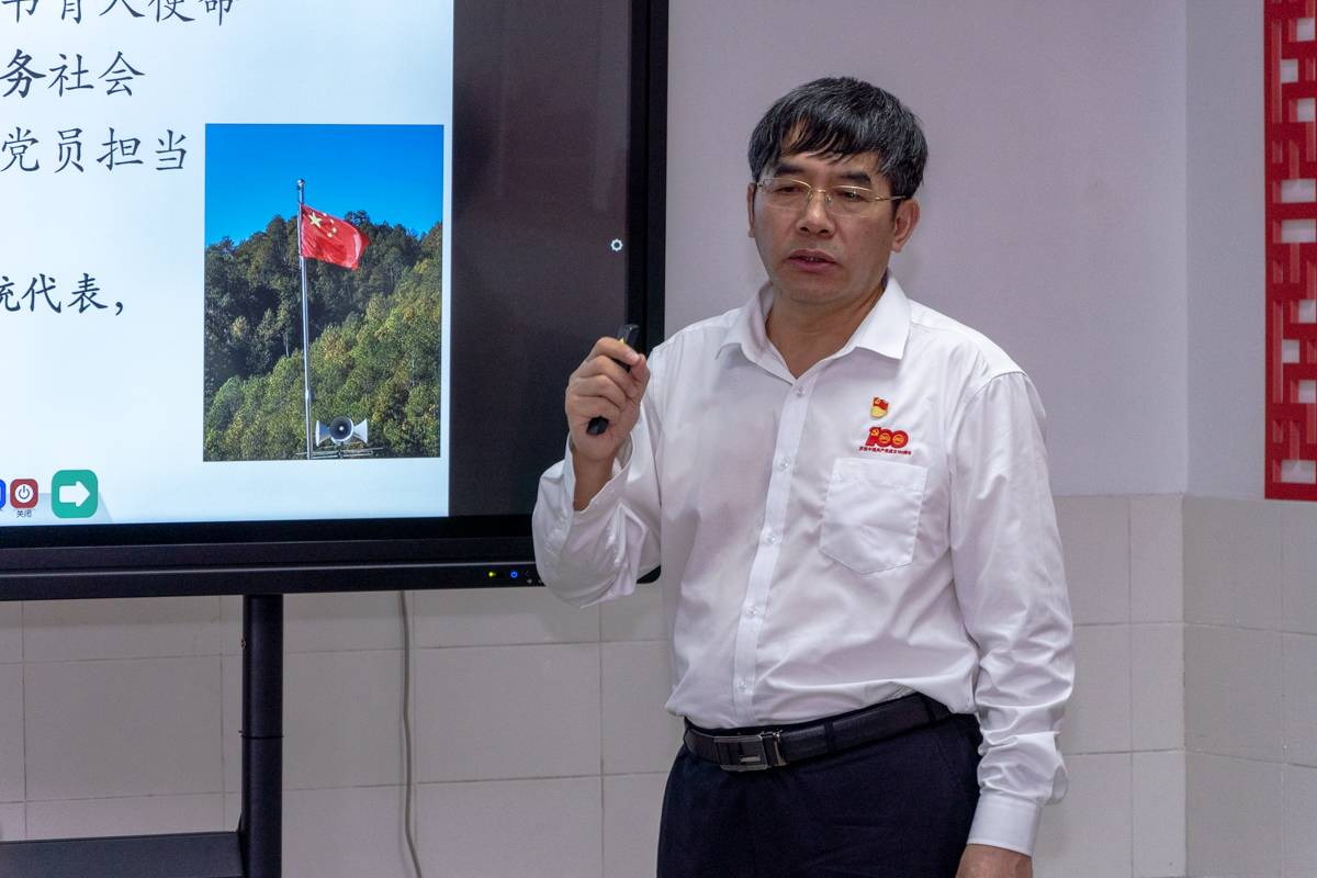 高翅强调,广大党员教师作为党的教育工作者,要不忘立德树人初心,牢记教书育人使命。要将党和人民装在心中,将党的教育方针落实于行动中,做到耳熟能详、规范表述、自觉践行。他提出,党员师生要有高水平科技自立自强的信心,用骨气、志气和底气,立足国家放眼世界,立志做开创性突破性的工作。要更加重视科学精神、创新能力、批判性思维的培养培育,着力培养高水平创新型人才。“请党放心,强国有我”,努力提升教书育人、科技自立自强本领,凝聚爱党爱国忠心,砥砺强国之志,实现报国之心。