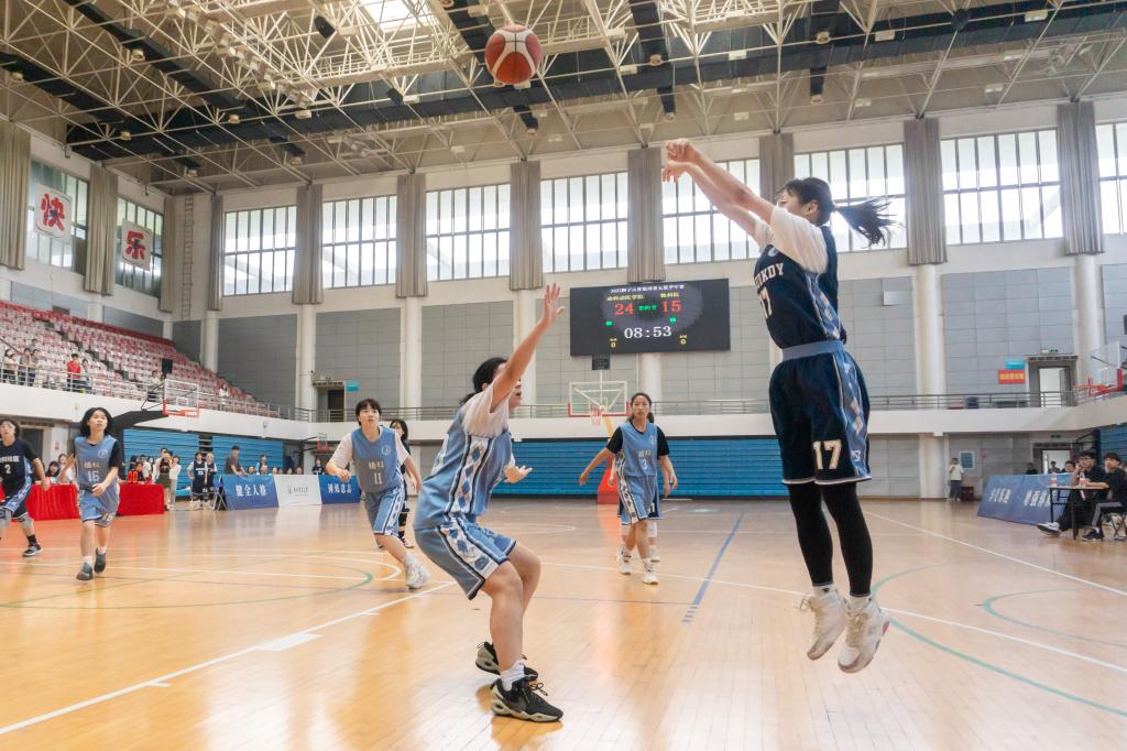 下半场比赛开始,植科队率先持球进攻,上篮得分。动科动医队迅速调整状态,11号武文英两次进球,重振士气,比分拉到18:10。植科队不甘落后,奋起直追,双方比分交替上升,以19:15进入僵持阶段。动科动医队11号武文英一记强投,打破局面,拿下三分。随后,7号何怡欣接球上篮,再得两分,最终以24:15结束第三节比赛。第四节比赛,动科动医队保持良好状态,17号郝梅林中距离进球,10号凌心童空心入网,28:15,比分再次拉大。面对落后局面,植科队顶住压力,投篮得分、罚球得分,比分追到28:20。动科动医队迅速遏制植科队攻势,连续进球,赢得阵阵喝彩。最终动科动医队以38:20结束比赛,摘得季军。