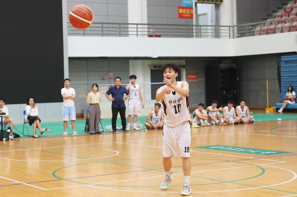 下半场比赛开始,资环队率先持球进攻。动科动医队却连续出现进攻失误、防守不当,士气稍有低迷。动科动医队45号王修远迎难而上,在队友的配合下抢到篮板,迅速发起直球快攻,重振动科动医队士气。14号翁古吉昌乘胜追击,以一记漂亮的3分球赢得全场喝彩。资环队加强防守,妄图以“铁壁”遏制动科动医队的进攻势头。14号翁古吉昌突破对方严密防线,再次扣篮得分,使比分来到40:30。比分落后,资环队攻势愈发凶猛。动科动医队在严防死守的同时积极组织进攻,10号黄嘉文以漂亮的两分球结束了第三节的比赛。