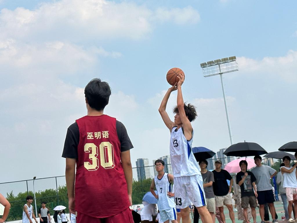 易边再战,红队延续良好的进攻势头,21号余松俊率先进球得分。随后,白队吹起反击号角,加大进攻力度同时稳固防守,13号黄宏斌以一记三分球激起现场观众的热情,并助攻0号张盟命中一球。红队调整战术,加强防守,扼住白队得分势头。第三节比赛以25:14结束,白队缩小了比分差距。