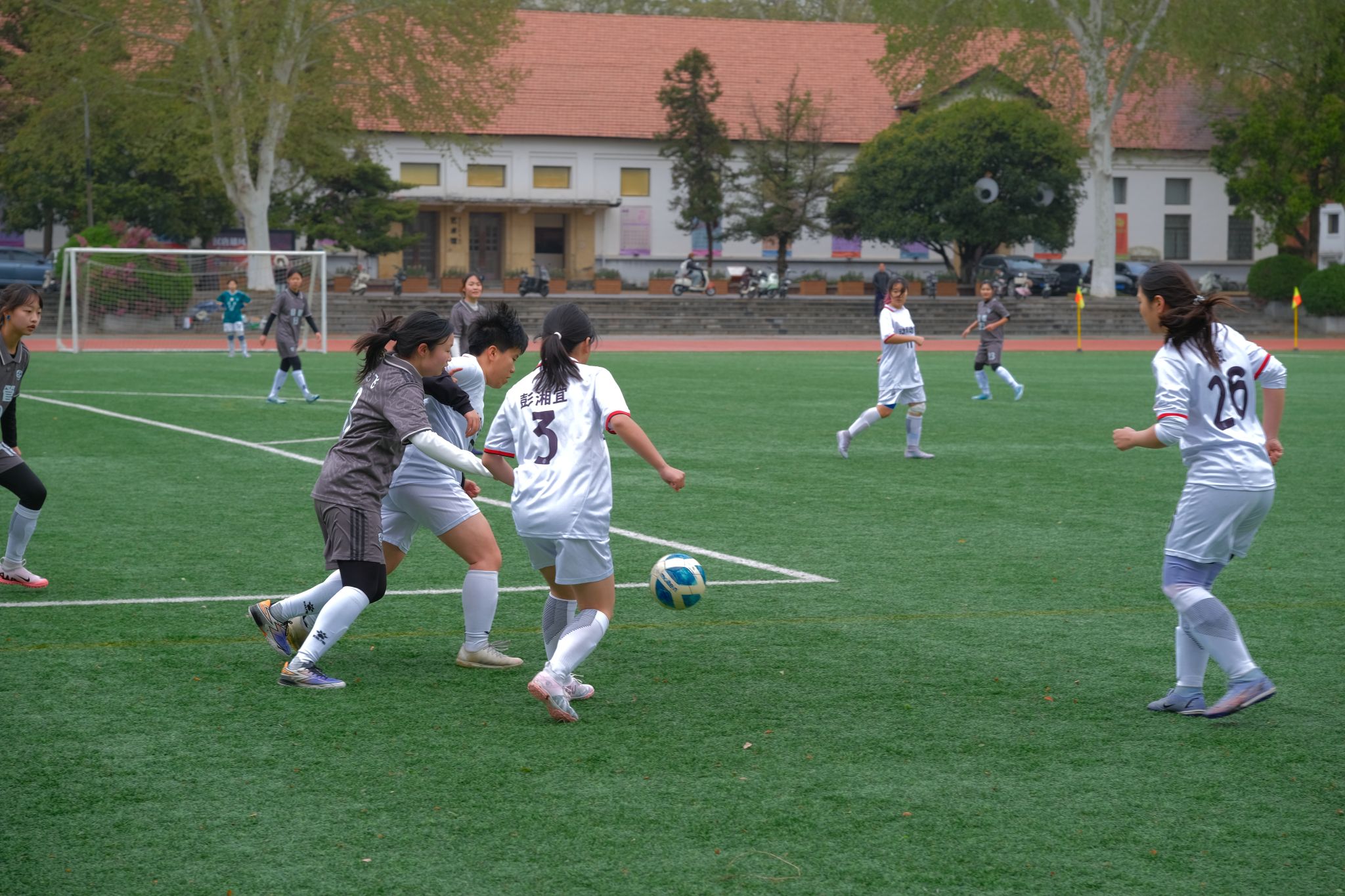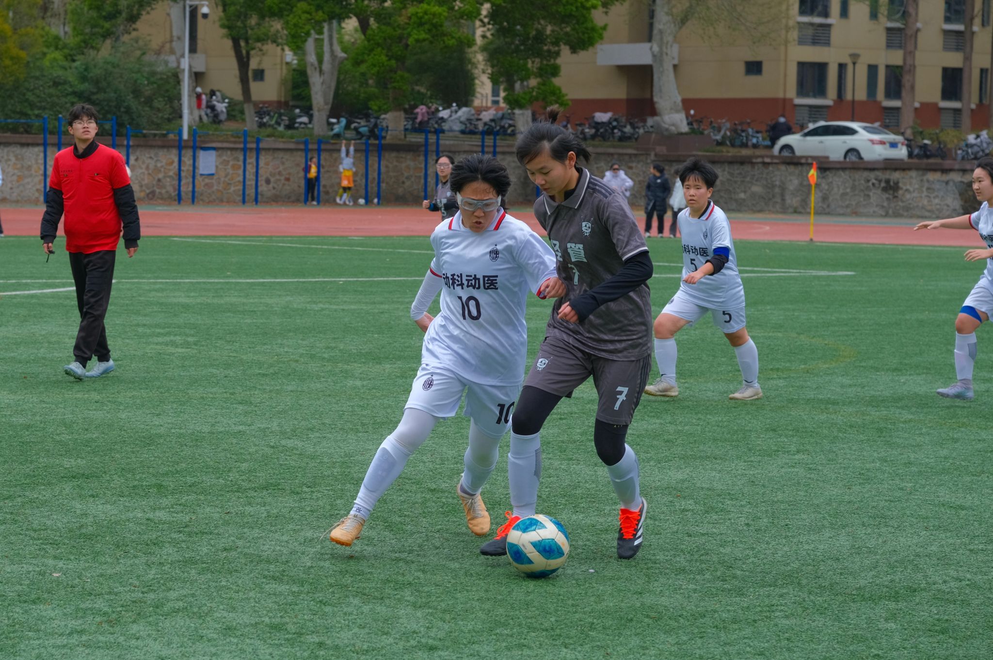 失球后,动科动医女足立即展开反击。11号许文诺接后场长传后快速突破,但因手球犯规错失射门机会。上半场结束前,动科动医女足再度发起攻势,5号李辰垚、11号许文诺与19号胡诗婕配合默契,连续传递突入禁区,但射门被经管后卫封堵。