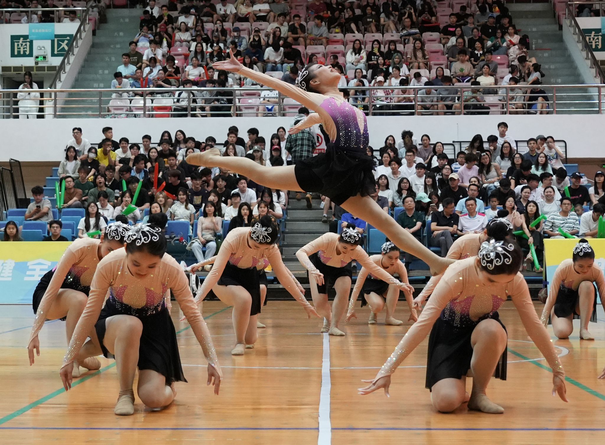 队员们间的默契配合更是表演的一大亮点。她们相互信任与支持,凭借在日常训练中培养的默契,成功完成了令人惊叹的托举和抛接动作。每一次跳跃、旋转,都凝聚着团队力量,也赢得观众此起彼伏的掌声与欢呼声,现场气氛被推向高潮。