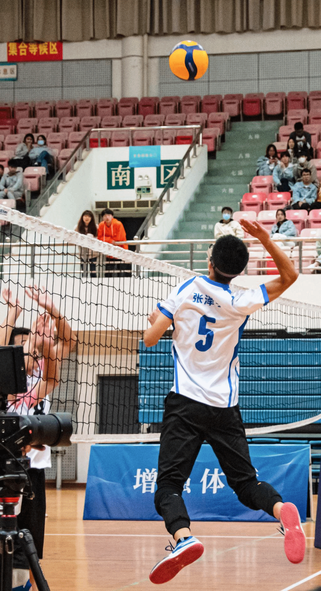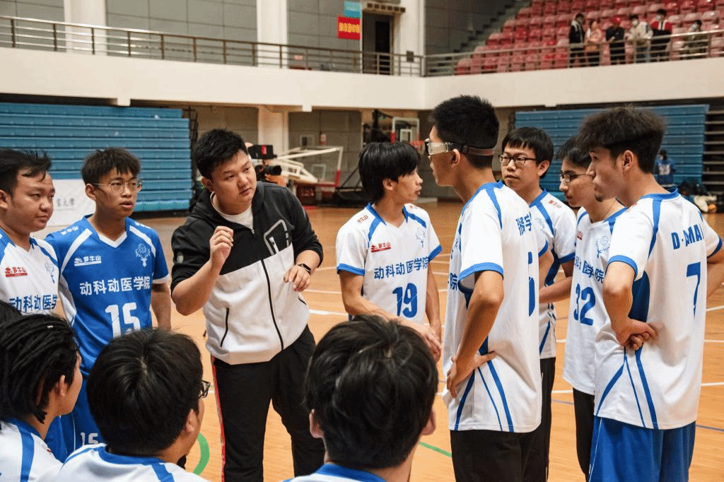 第二局,动科动医队状态恢复,开局15号姜政判断对方发球失误,拿下1分。紧接着,经管公管联队接连失误送分,动科动医队抓住对方漏洞,扣杀、拦网,迅速拉大比分。随着19号周国强推球得分,动科动医队以25-15拿下第二局。